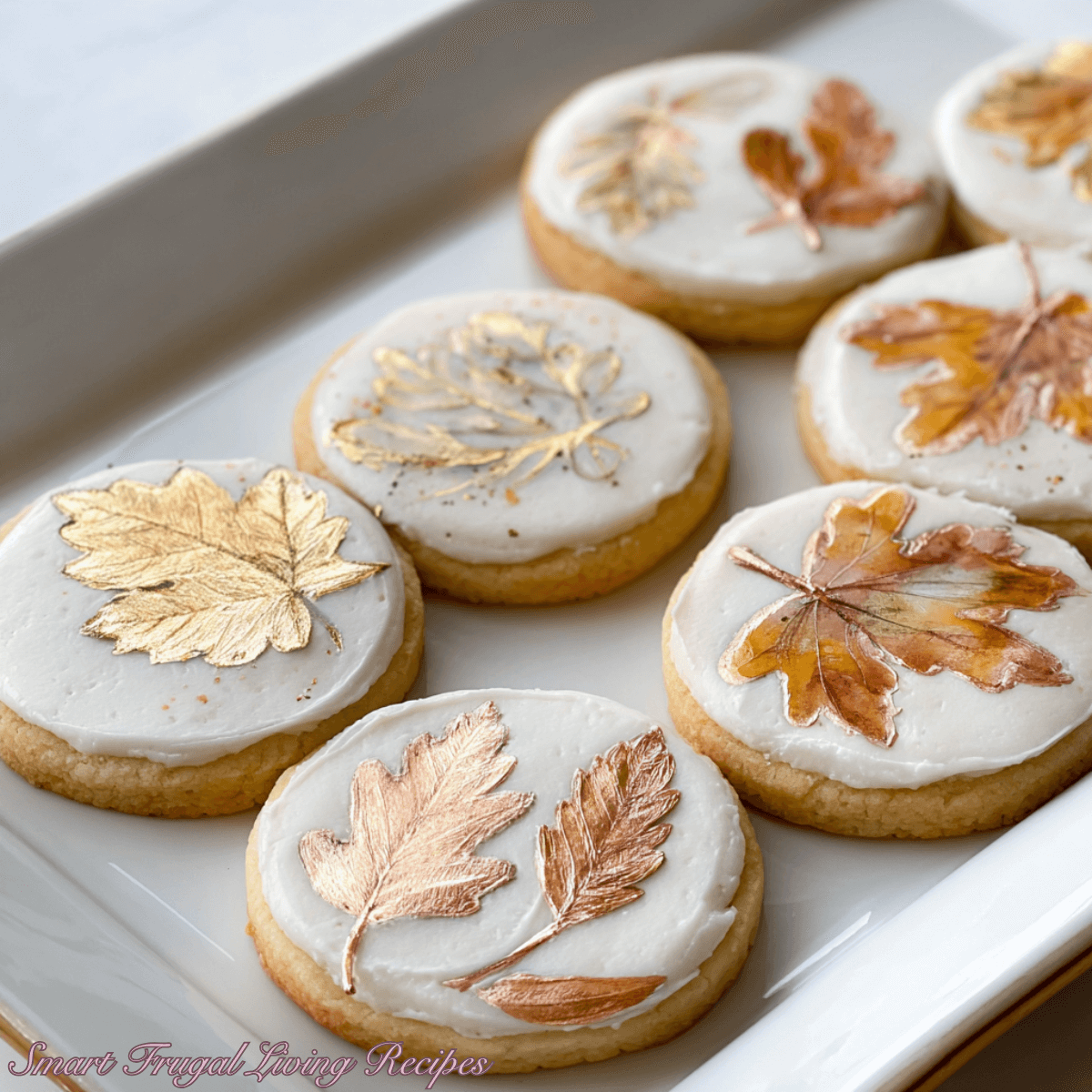 These cookies are perfect canvases for your creativity. In the photo, I’ve frosted them with creamy white icing and adorned each one with a shimmering edible gold leaf design for that elegant fall touch. But you can also decorate with colorful royal icing, pumpkin spice glaze, or even cinnamon-sugar dusting.