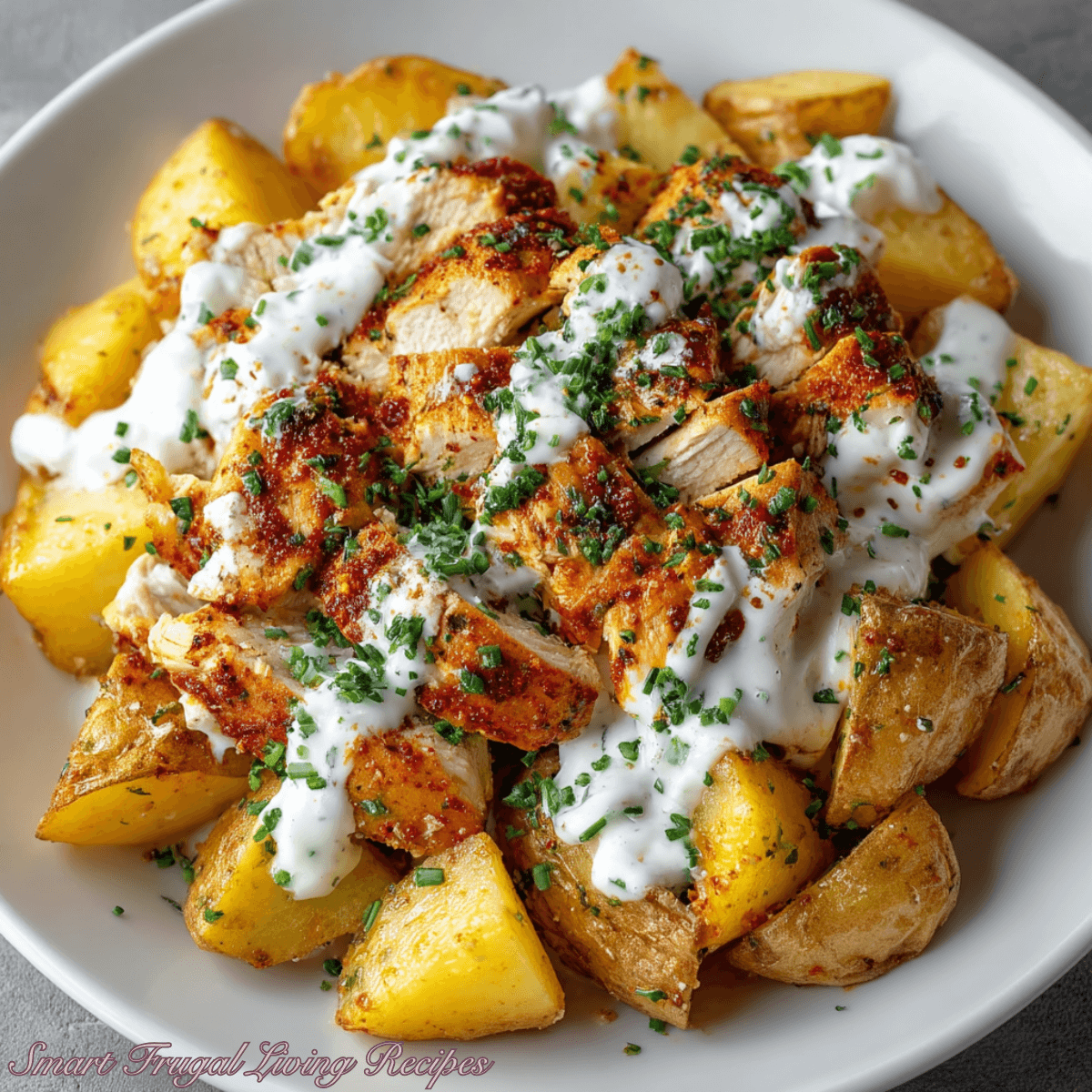 - Pour sauce: Pour the garlic-Parmesan mixture evenly over the chicken and potatoes.