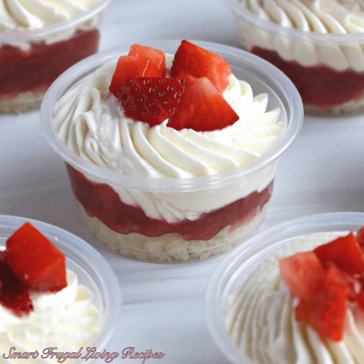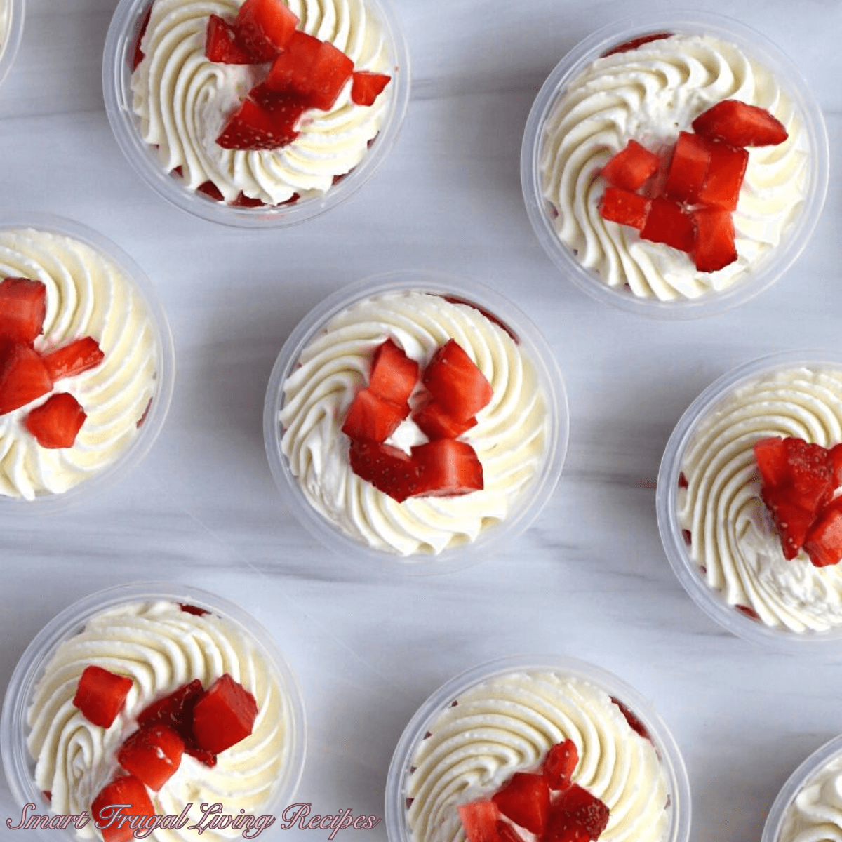 If you have leftover cups, blend them into a strawberry milkshake or layer them into a larger trifle dish for family-style serving. They also make a delicious topping when spooned over pancakes or waffles the next morning.